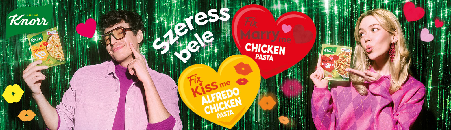 A Knorr Marry Me csirkés tészta alap és a Knorr Kiss Me csirkés tészta alap a tésztaételek igazi sztárjai, melyeket a Social media trendek ihlettek! Olyan finomak, hogy halálosan beléjük lehet szeretni! A végeredmény? Nagyon krémes, nagyon szószos, igazi ízdömping! Csupán néhány hozzávaló szükséges hozzájuk! Kevesebb, mint 15 perc alatt elkészíthetőek és minden falat maga a szerelem.